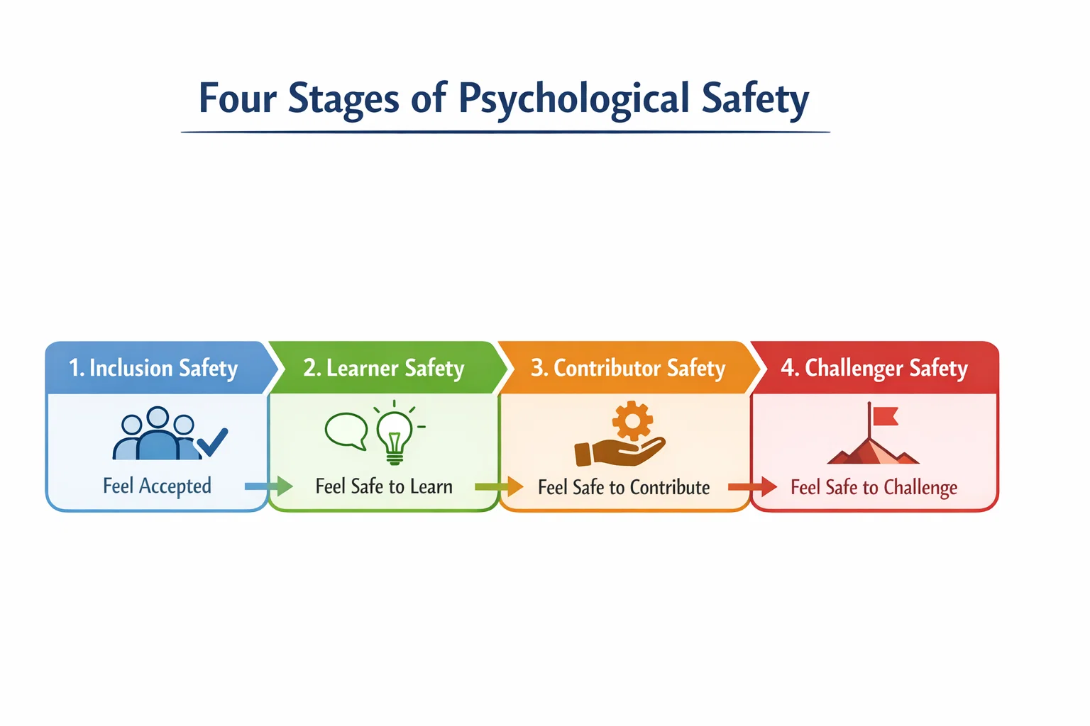 Psychological safety develops in stages. Each stage supports safer behavior in different ways.